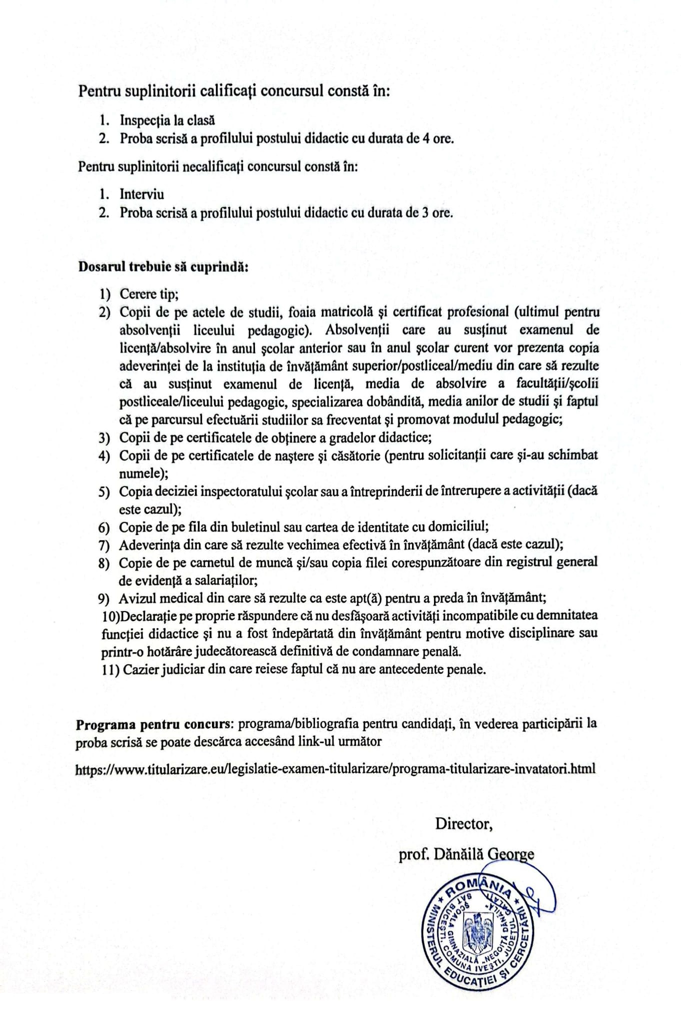 Concurs învăţători