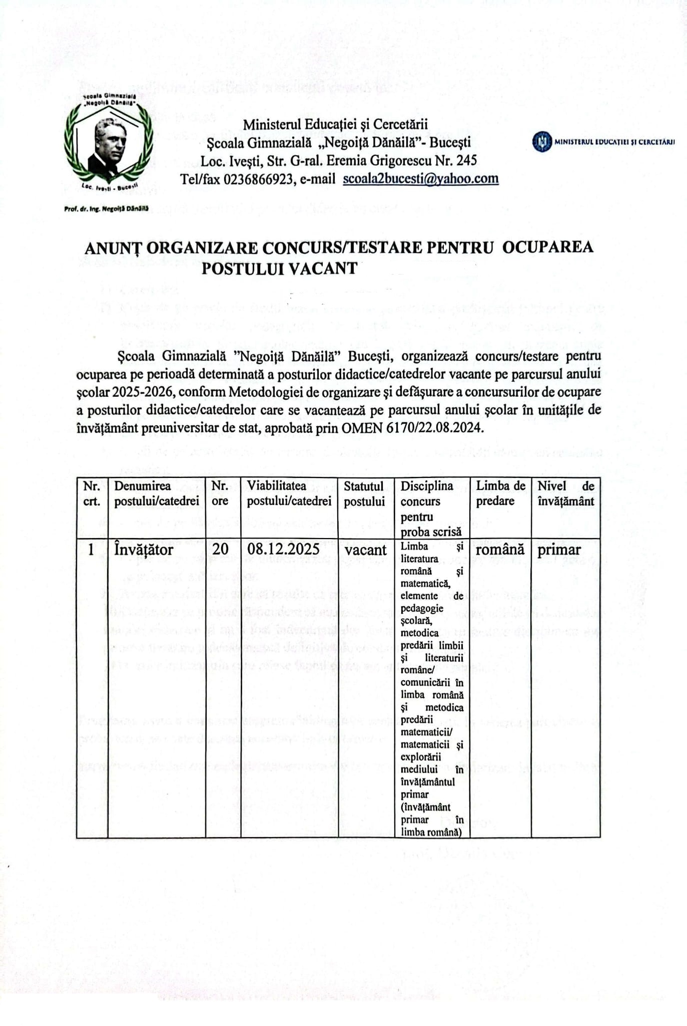 ȘCOALA GIMNAZIALĂ „NEGOIȚĂ DĂNĂILĂ” BUCEȘTI